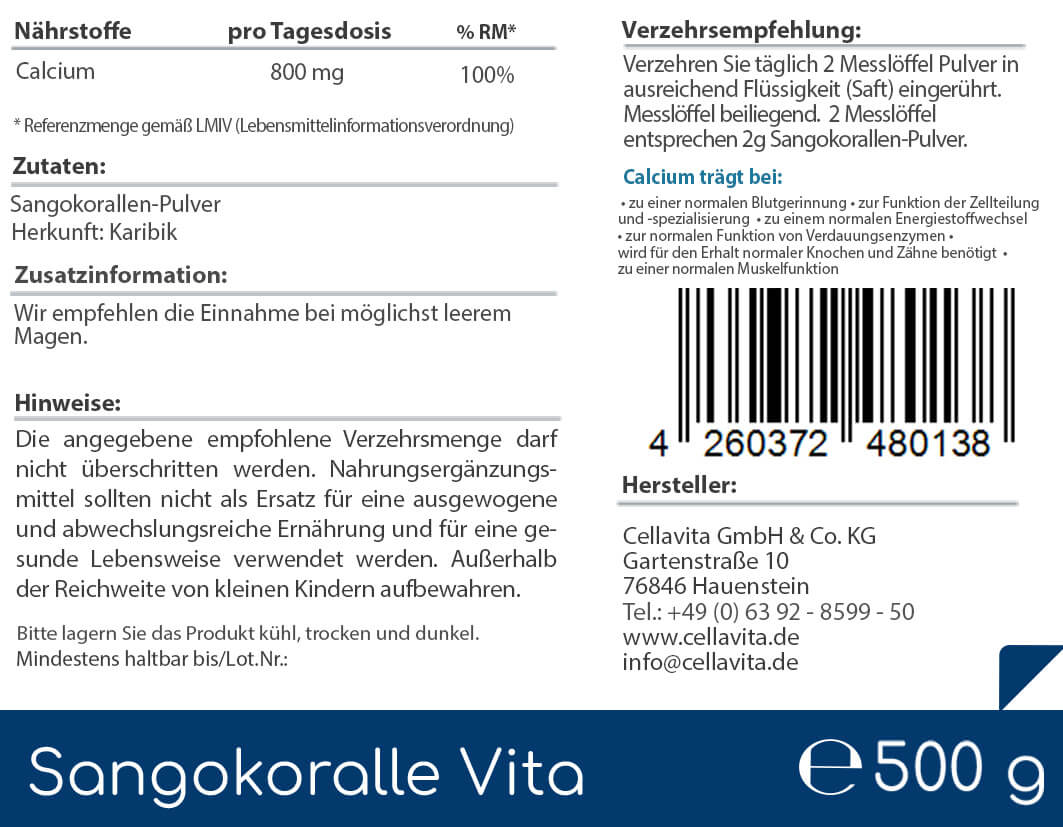 Mobile Preview: Sangokoralle Vita - Calcium (SANGO) 4 Monatsvorrat -500g